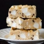 Line an 8-inch square pan with parchment paper; set aside. Place the miniature chocolate chips on a plate and place in the freezer until ready to use.