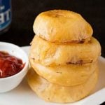 If you want to keep the onion rings warm before serving, heat the oven to 200 degrees and after draining and seasoning the onion rings, transfer them to the warmed oven.
