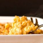 Sprinkle the macaroni and cheese with the remaining shredded cheeses. Sprinkle the breadcrumb mixture on top of the cheese.