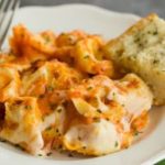 In a very large bowl, combine the tortellini and three-quarters of the sauce mixture. Turn into a 9x13-inch casserole dish and spread into an even layer.