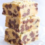 Chocolate chip cookie bars are the perfect easy treat when you're craving your favorite chocolate chip cookies but don't want to wait for dough to chill or to scoop out cookies!