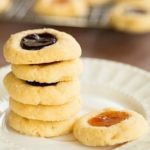 Bake for 10 minutes, then remove from oven. (At this point there was a little bit of melted butter underneath the cookies, but when they finished cooking it was all absorbed, and they were perfect!) It may be necessary to create the indentation once again with a spoon. Place about 1 teaspoon jam, jelly or preserves into the indentation of each cookie. Bake an additional 5 to 10 minutes, or until lightly browned. Remove from oven. Cool on the baking sheets for 5 minutes, then transfer to a wire rack to cool completely. The cookies can be stored at room temperature for up to 1 week, or frozen for up to 1 month.