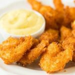 When the oil reaches 350 degrees F, gently place half of the shrimp in the oil and fry, stirring frequently to prevent sticking, until golden, about 2 1/2 minutes. Using a slotted spoon, spider, or tongs, transfer the shrimp to a wire cooling rack placed over a baking sheet and repeat with the remaining shrimp. Serve immediately, accompanied by the mango dipping sauce.