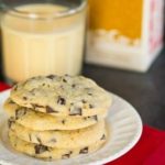 Using an electric mixer, beat the butter and sugar on medium speed until light and fluffy, about 3 minutes. Scrape the sides of the bowl and add the eggnog, egg yolk and vanilla extract; continue beating on medium speed until completely combined, about 2 minutes. Reduce the mixer speed to low, add the dry ingredients and beat until just combined. Using a rubber spatula, fold in the chocolate chunks.