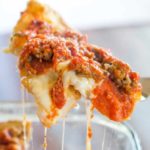 Gently shape dough into a rough rectangle about 11x14 inches. Gently transfer the dough to the prepared baking dish and press into the bottom, corners and up the sides. Refrigerate while you prepare the sauce.