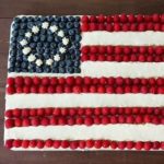 Decorate the Cake: Take about three-quarters of the frosting and spread in an even layer over the top of the cake. Using a toothpick, lightly draw a square in the upper lefthand corner of the cake. Fill in the square with blueberries. Place two rows of raspberries across the top of the cake to make a red stripe. Place the rest of the frosting into a decorating bag with a large tip and pipe two rows of frosting below the raspberries. Continue alternating rows of raspberries and frosting until you get to the bottom of the cake. Pipe stars onto the blueberries in whatever design you'd like.