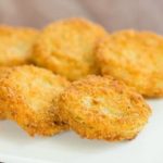 Working with several slices at a time, coat the tomatoes in the flour and shake any excess flour from each piece. Using tongs, dip the tomatoes into the buttermilk mixture, turning to coat and allowing the excess to drip off. Coat the tomato slices with the seasoned flour-cornmeal mixture, shaking off any excess. Place the tomatoes on a wire rack set over a rimmed baking sheet. Repeat with remaining tomato slices.