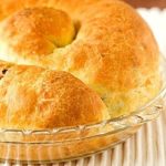 Add the milk and yeast mixture to the flour and begin to mix it into a dough (it will be shaggy at this point). Next, add the vegetable oil and melted shortening and continue to mix. Now, add the eggs and continue mixing until the dough forms a rough ball.