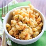 Sprinkle the macaroni and cheese with the remaining shredded cheeses. Sprinkle the breadcrumb mixture on top of the cheese.