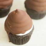 Holding each cupcake by its bottom, quickly dip each cupcake into the chocolate to coat the frosting, and place on a wire rack. Let the cupcakes stand at room temperature 15 minutes, then refrigerate for 30 minutes uncovered. Place in a covered container and refrigerate 2 additional hours before serving. Cupcakes can be refrigerated for up to 3 days.