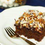 Meanwhile, Make the Chocolate Glaze: In a medium saucepan, combine the chocolate chips, corn syrup, and heavy cream. Stir over medium-low heat until the chocolate is melted and the glaze is smooth. Pour the chocolate mixture over the top of the cake. If necessary, use the back of a spoon to gently spread the chocolate over the marshmallow layer so it is evenly covered. Sprinkle with the pecans, and then the coconut. Let cool completely before serving. Store leftovers tightly wrapped (or in an airtight container) at room temperature.