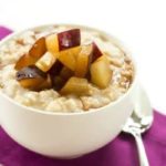In a small bowl, toss the chopped plum, remaining 1 teaspoon of maple syrup and cinnamon in a bowl; let stand for 5 minutes. Serve the chilled oatmeal topped with the fruit and any accumulated juices.