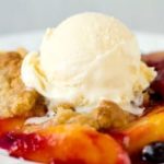 Assemble & Bake: Transfer the par-baked crumbles to the top of the peach and blueberry filling, spreading it into an even layer. Break up any large pieces and lightly tamp down on the crumbles so they adhere to the filling. Sprinkle the remaining tablespoon of granulated sugar evenly over the top of the crumble. Bake until the crumble is golden brown and the fruit filling is bubbling around the edges, about 30 minutes. Allow to cool on a wire rack for at least 15 minutes before serving.