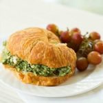 Pour the pesto mixture over the chicken, add the salt and pepper, and stir to completely coat all of the chicken. Serve on your croissants or your favorite bread. Leftovers can be stored in an airtight container in the refrigerator for up to 2 days.