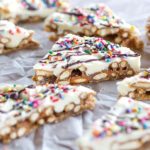 Refrigerate the pretzel bark in the pan for 15 to 20 minutes, until the chocolate is set. (If desired, drizzle with dark chocolate. Refrigerate for an additional 15 to 20 minutes afterward.)