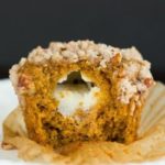 Sprinkle the pecan streusel on top of each muffin. Press on the streusel lightly to make sure it adheres to the batter.