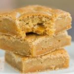 Bake the blondies for about 30 minutes, or until the top is golden brown and a toothpick inserted into the center comes out with just a thin coating of caramel. Cool the bars on a wire rack to room temperature, then refrigerate for at least 30 minutes to allow the caramel layer to set. Cut into squares and serve. Store leftovers in an airtight container at room temperature for up to 4 days.