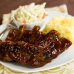 Using tongs, remove the ribs to a large plate. Pour off all accumulated liquid and the onions. Return the ribs to the empty slow cooker and pour the barbecue sauce over top, turning the ribs so they are evenly coated. Cover and cook on low for an additional 1 hour. Cut and serve!