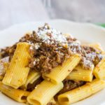 Process the pancetta, salami, carrot and celery in the now-empty food processor until ground to a paste, about 45 seconds, scraping down the sides of the bowl as needed. Transfer the pancetta mixture to the bowl with the onions. Stir the wine, water, 2 tablespoons of the olive oil, tomato paste, oregano, ¾ teaspoon salt and ½ teaspoon pepper into the onion mixture until thoroughly combined.