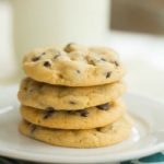 With an electric mixer on medium speed, cream together the butter and both sugars until light and fluffy, scraping the sides of the bowl as necessary, about 3 minutes. Add the eggs and vanilla extract and mix until combined. Reduce the mixer speed to low and gradually add the dry ingredients, mixing only until a little flour remains. Using a rubber spatula, fold in the chocolate chips.