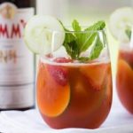 Make the Drink: In a cocktail shaker with ice, combine the Pimm's No. 1, lemon juice and 1 ounce of the strawberry syrup and shake. Strain into an ice-filled glass and top with the 7UP. Garnish with sliced cucumber, strawberries and a sprig of fresh mint.