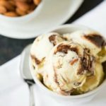 Churn the Ice Cream: Freeze the ice cream according to the ice cream maker's instructions, adding the chopped almonds during the last minute of churning. As you transfer the ice cream to the storage container, alternate layers of the ice cream with drizzles of the fudge ripple. Once all of the ice cream is in the container, use a butter knife to gently swirl the mixture.