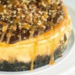 Note: Some readers have mentioned issued with the caramel sauce leaking through the springform pan while baking. To avoid a mess, place a rimmed baking sheet on the oven rack below the cheesecake to catch any drips.