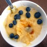 Once all of the cornmeal is added, turn the flame to low and simmer, stirring frequently, until the polenta has thickened. Depending on the coarseness of your meal, it may take 10-40 minutes. Once thickened, add sugar and vanilla extract. Sprinkle cinnamon in if you life.
